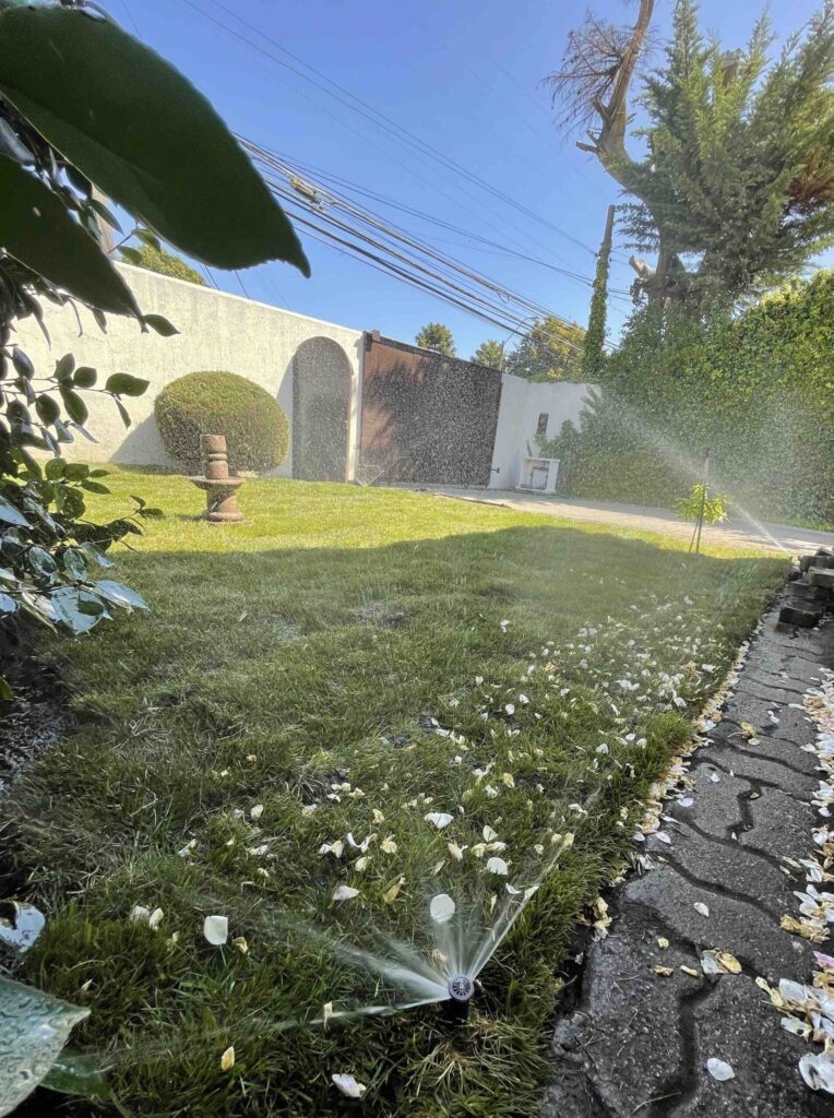 Después de la instalación, es esencial mantener el pasto bien regado durante las primeras dos semanas. Se recomienda regar ligeramente todos los días para mantener el suelo húmedo pero no empapado
